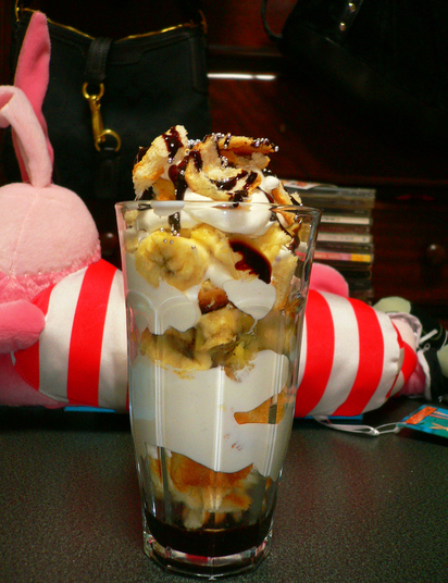左は余ったクリームで作ったバナナパフェもどき